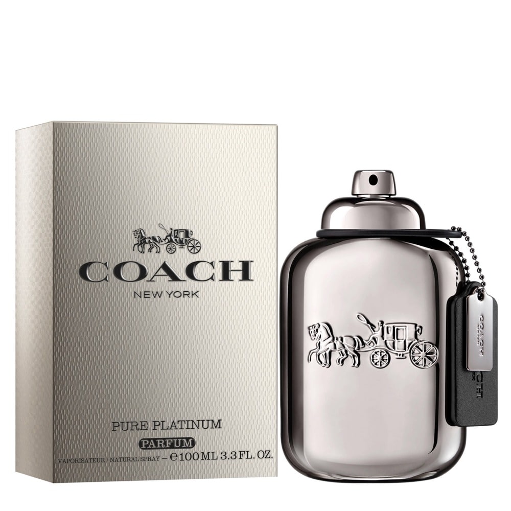 Coach for Men Pure Platinum Parfum, a refined masculine parfum inspired by the brilliance of platinum. Bold, modern and designed to leave a lasting impression.